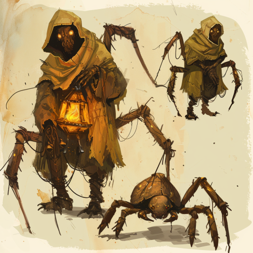 dwarf, spider, weaver bug, magic, arcanic, anthro, full body, charater sheet
