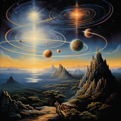 Create a visually stunning representation of complex mathematics intertwined with sacred geometry. Incorporate intricate patterns like the Flower of Life, Fibonacci spiral, and fractals, blending them seamlessly with mathematical symbols and equations. Use a vibrant color palette that highlights the harmony between mathematics and nature, with a mystical background that evokes a sense of wonder and exploration. The composition should feel both structured and organic, inviting viewers to delve into the beauty of mathematical concepts
