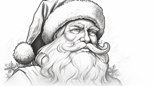A coloring page in black and white of santa claus , line drawing --ar 16:9 --v 5.2