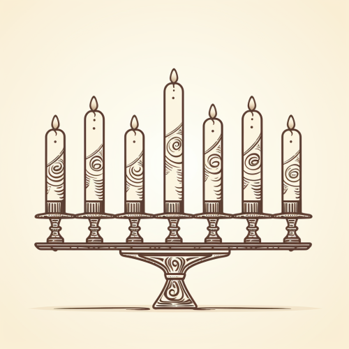 Beautidul Menorah with nine candles. Classic Menorah with nine candles. Hanukkah Candles. Beautiful. Simple Drawling. Doodle Style. Vintage Style. White Background.