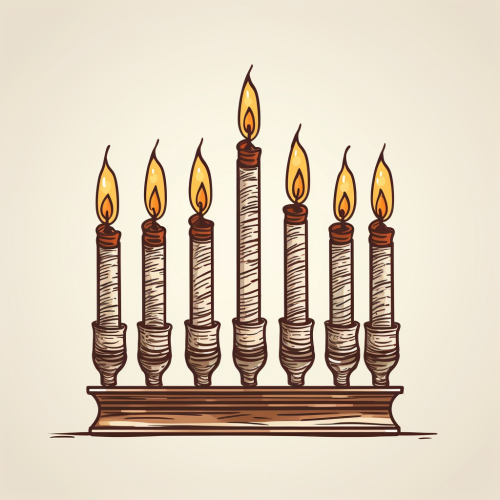 Jewish Menorah. 9 cancles. Classic Menorah with 9 candles. Hanukkah Candles. Beautiful. Simple Drawling. Doodle Style. Vintage Style. White Background.