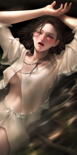 Elegant female lie down with a enchanting pose, looking at viewer with mysterious smile, mouth open, arms reach up, on floor, flirty, wearing non undeclothes, amazing features, amazing makeups, she soaked by sweat, water drip down from face and legs, attractive Long legs, multiple poses, realistic, dramatic contrast, Rembrandt lighting, --upbeta --ar 1:2 --s 1 --niji 5