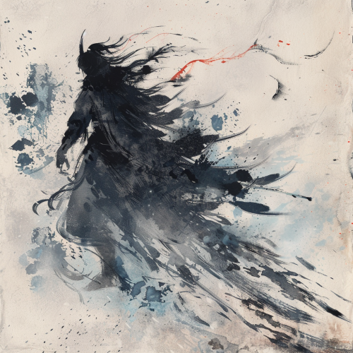 onryo, japanese vengeful sprit, izometric, japanese aesthetics, scary dark atmosphere, game style, japanese traditional color ink painting, watercolor texture, watercolor splash --v 6.0