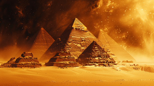 space-time continuum, flying Egyptian pyramids in the fourth dimension, fractals, digital lighting --ar 16:9 --s 750 --v 5.2