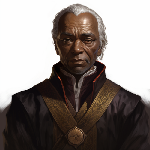 elderly elf male from dungeons and dragons with dark skin in dark priest robes