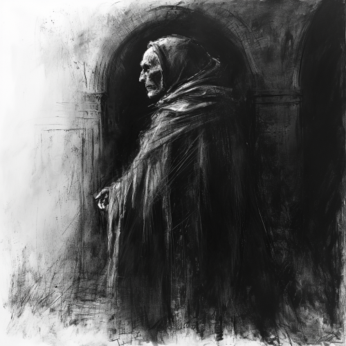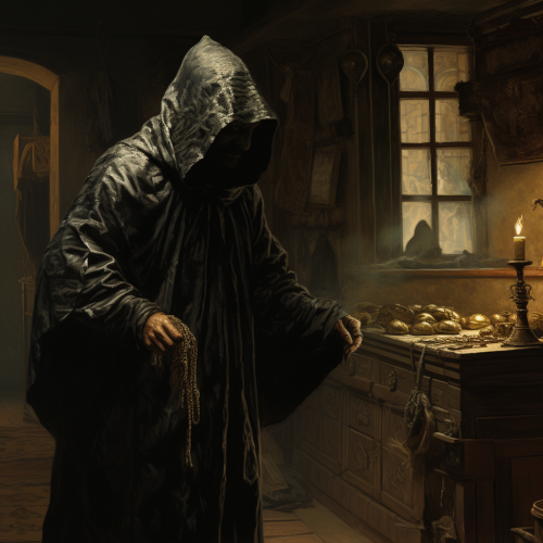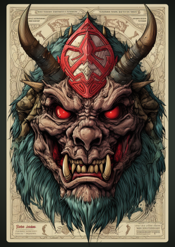 An aureate medieval Light and the sacred image with Demonic, Monster, Checking account, medieval style, and a Atmospheric view --v 5.2 --c 15 --style raw --s 300 --ar 5:7