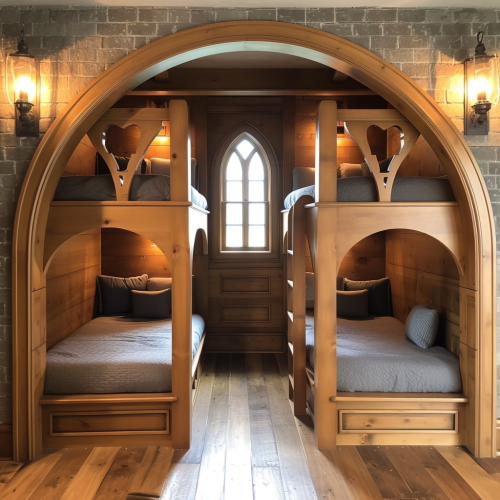 photo of bunk beds shaped like hogwarts --v 6.0 --style raw