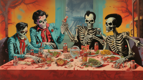 negative space background, eclipse red circle, big close up night, dawn, day of the living dead, collage of a zombie apocalypse surreal --style raw --v 6.1 --s 250