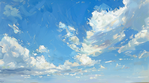 painting of blue sky with light clouds, loose, painterly, sketchy, painted by howard terpning --ar 16:9