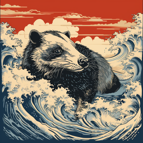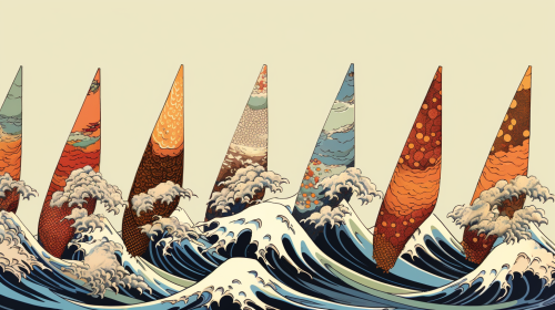 Illustration in style of Katsushika Hokusai, cones skittles party, --ar 16:9