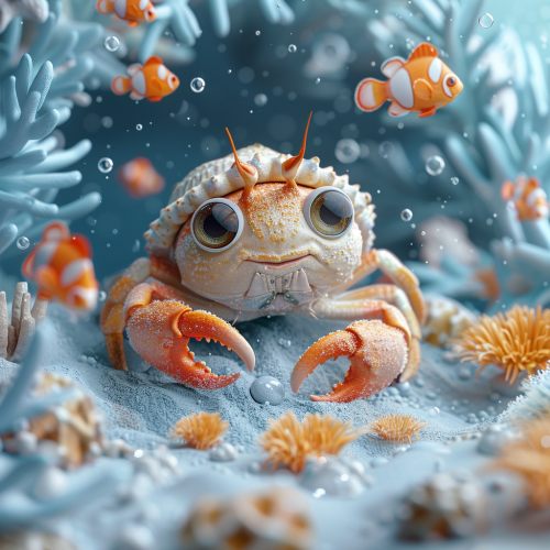 Serious baby crab playing tiny seaweed violin - Fishdom-style