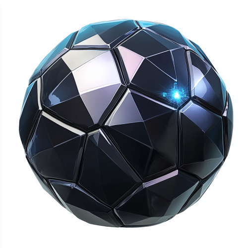 black diamond themed soccerball. image is centered. no background. blank background. high resolution. outlined like a logo. cartoon style. silver and midnight blue colors. dramatic. glowing. cartoon style. illustrated.