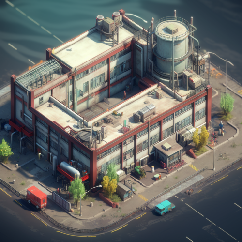 a man looking at his big factory full of robots under construction. photo realistic. 32k. --ar 16:9 --v 6.0
