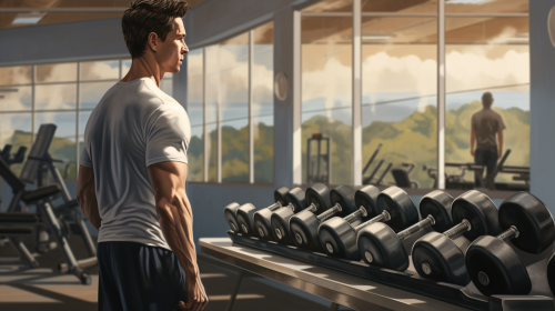 film character Knuckles lifting dumbbells in a gym, --ar 16:9 --v 6.0 --style raw --s 750
