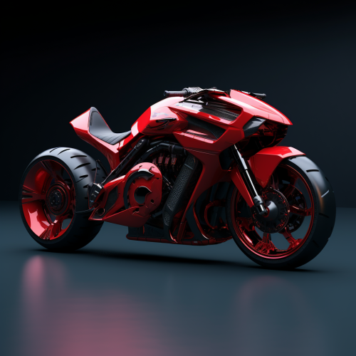 futuristic red and black motorcycle made only out of geometric carbon fiber panels, photo from a distance, in a photostudio whiteroom, from a distance Concept art, side view, product render 3D, insanely detailed and intricate, octane rendering, Keyshot rendering, ray tracing, HD white photoroom studio, highly detailed, 4k Resolution
