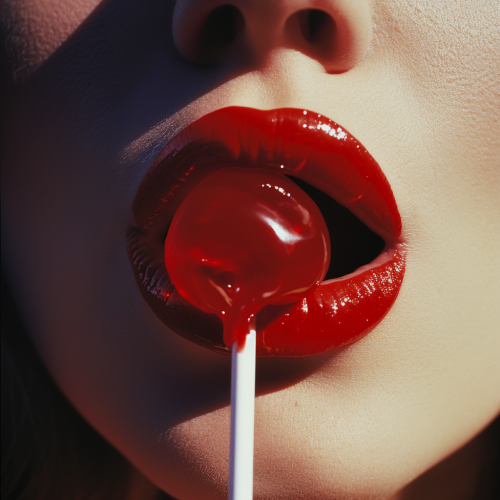 Close-up, mouth with lollipop in mouth, red lips --v 6.0 --style raw