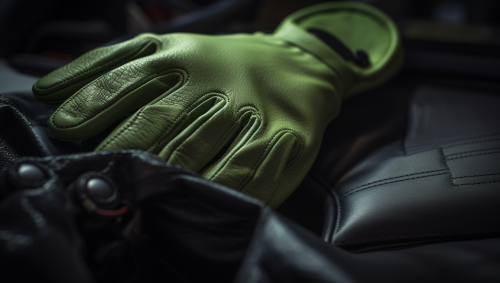green F1 gloves, aston martin look and feel, 4k, photorealistic, hyper-realism, close up shot, DSLR, Depth of field, high resolutions --v 5.0