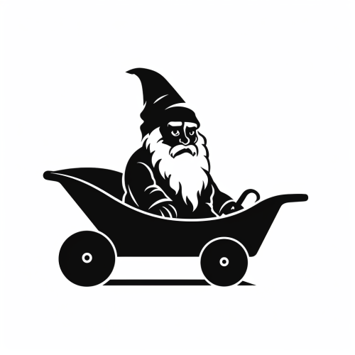 Garden gnome with wheelbarrow , Simple Design, Cartoon Style, Black Silhouette, Flat 2D, Vector, Colorless, White Background --v 5.2
