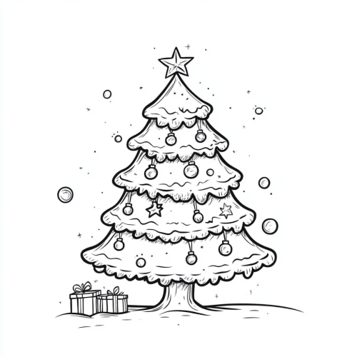 Christmas Tree, Very simple, minimalistic, cartoon style, for toddlers aged 3-6, lots of white space, isolated on white background, clear thick lines, coloring page, low details, no shading