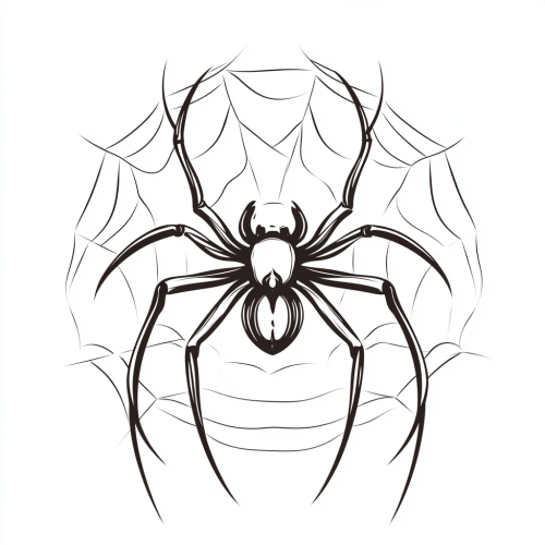 spider white widow with web, simple line art style, white background, black and white color only, simple details for tattoo, stencil tattoo, solid lines, simple details of flat designs, thick outline, sticker style