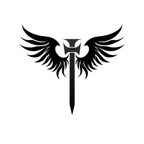 Gothic christian cross with angel wings vector logo black color on white background