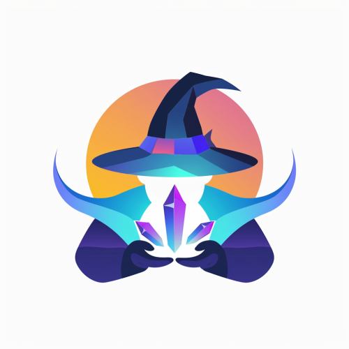 flat vector logo, gradient, magician, crystal, simple, minimal, white background