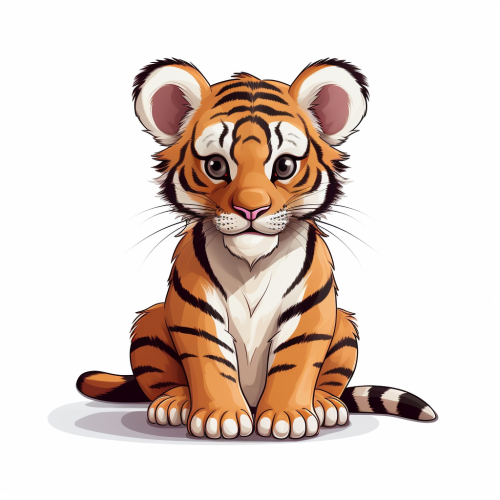 Create a friendly, adorable, chubby TIGER character with a smiling face, outline art, coloring page outline page with white background, sketch style, only use outline, cartoon style, clean and clear and well outlined. Ensure the character has a smooth and inviting appearance. Keep the design minimalistic for easy coloring. The goal is to make it appealing and approachable for children aged 2 to 4 in the middle of their artistic journey, make it black and white --s 250