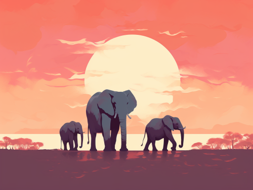 a series of elephant silhouettes portrayed with a simplistic charm, two adult elephants and one baby elephant, utilizing pastel shades and stark negative space, reminiscent of modern minimalist art, inviting contemplation, shapes, in the style of black and white abstraction, bombacore, memphis design, whimsical animation, campcore, synchromism, tagging-like mark --ar 4:3