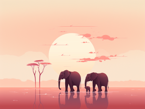 series of elephant silhouettes portrayed with a simplistic charm, two adult elephants and one baby elephant, utilizing pastel shades and stark negative space, inviting contemplation, fluid shapes, in the style of cartoon abstraction, soft warm light colors, memphis design, sanriocore, whimsical animation, pop inspo, sfumato --ar 4:3