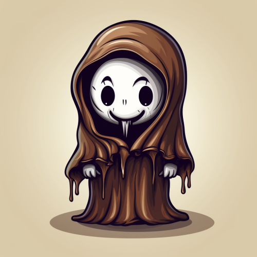The Grim Reaper, Skull face, sinister ominous creature, looks like he is melting and vaporizing, cute small cartoon style