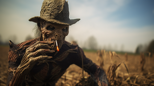 Freddy Krueger smoking a joint in a field of cannabis, 8k uhd wide angle, photo taken with Sony mirrorless --ar 16:9