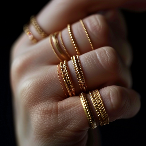 Set of knuckle rings worn above the middle joint of the finger. Made of gold using Van Cleef's Perlée technique, single layer. elegant style