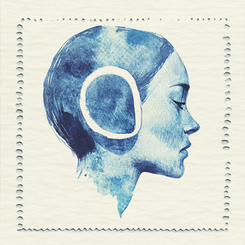 Stamp graphic design, Stamps with retro background only, watercolor style, light blue, people ears theme, Meticulously crafted, Flawless, Crisp details --v 6.1