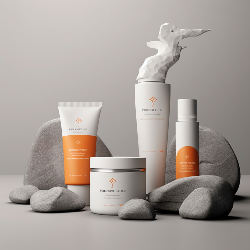 paleolithic era using modern skincare. branding is very light gray and bright orange. Create me cool packaging that reflects animal and plant based skincare with creams and pump bottles