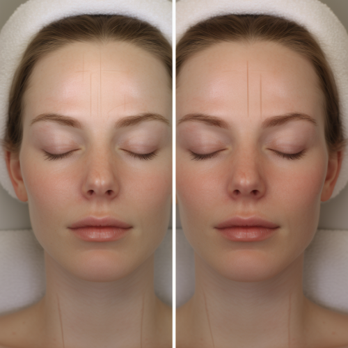 Generate a photorealistic image of a Caucasian woman performing a facial aesthetic treatment on another Caucasian woman lying on a massage table. The photo is a close-up of her face. --style raw
