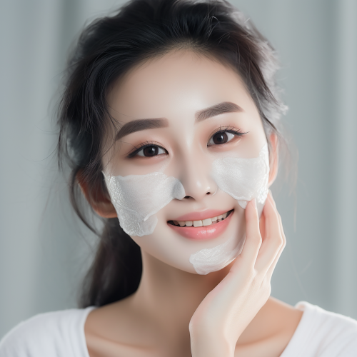 The white Facial mask at home,Asian Korean girl ,realistic photography, natural light,enjoy,happy,skin care