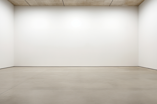 an empty contemporary gallery space, white wall frontal view, concrete floor, minimal --ar 3:2