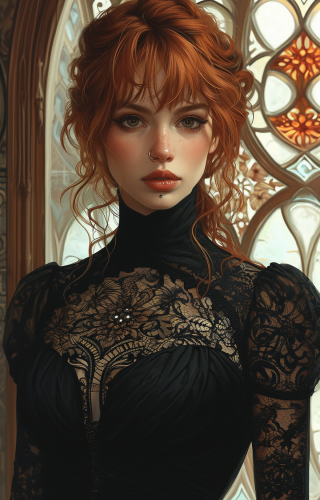Full height Portrait of young female (villain), centered portrait, fringe up hair, intricate details, highly details, full body shot, (Gothic), smooth, sharp focus! Concept art by: Ruan Jia, Ilya Kuvshinov, Alphonse Mucha and rossdraws. --no ugly, duplicate, morbid, mutilated, out of frame, extra fingers, mutated hands, poorly drawn hands, poorly drawn face, mutation, deformed, blurry, bad anatomy, bad proportions, extra limbs, cloned face, disfigured, out of frame, ugly, extra limbs, gross proportions, malformed limbs, missing arms, missing legs, extra arms, extra legs, mutated hands, fused fingers, too many fingers, long neck --ar 9:14 --v 6.0 --s 250