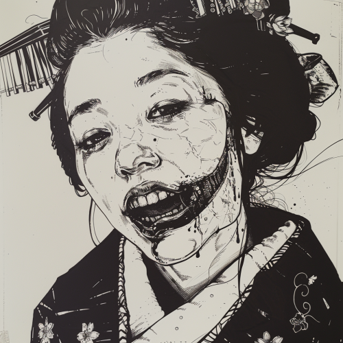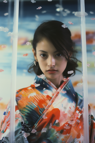 photo portrait of a japanese woman in kimono, studio portraiture, leica M9, studio portrait, performance, double exposure, urban djungle --ar 2:3