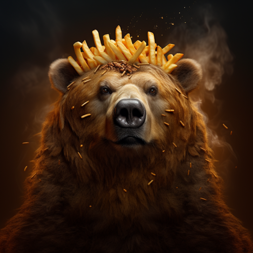 a human body with a bear head mask, closely resembling smokey the bear of the web3 project berachain, smoking a vape pen. the human body / bear head is smoking a vape pen. he has closed eyes and is deeply disappoined with the world.