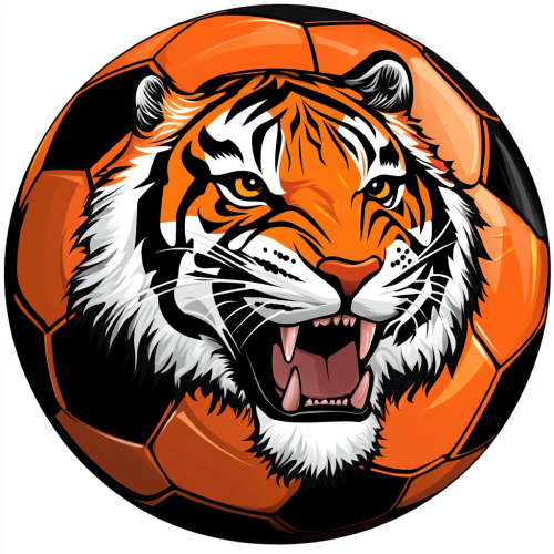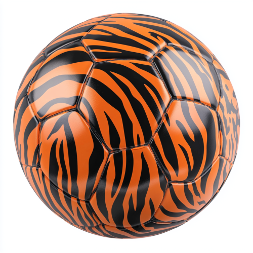 tiger striped themed soccerball. image is centered. no background. blank background. high resolution. outlined like a logo. cartoon style. flat ar.orange and black