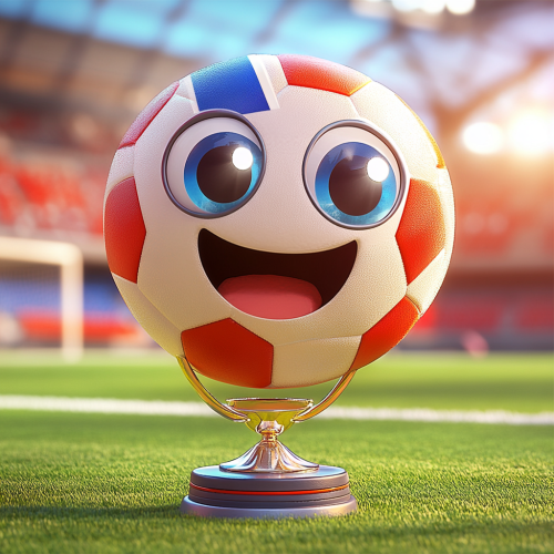 a cute soccer ball from JAPAB with the flag in the body of the ball, celebrating and so excited with beautiful eyes so expressive and cute in super HD in cartoon so Pixar style, cute, amazing and cute smile, with a amazing and big Champion trophy celebrating, amazing soccer stadium background 6.0