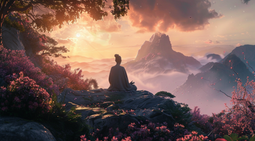 Silhoutte of meditating sage, in the style of matte painting, hyper-realistic portraiture, 32k uhd, faith-inspired art, soft lighting, sheet film, realistic hyper-detailed rendering --ar 128:71
