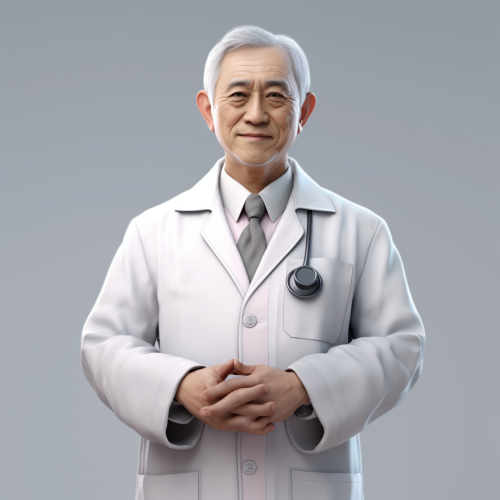 a gentle AI Animated reliable gentle japanese doctor, Ideal apperance, neat, speaking to you with smile, white cort