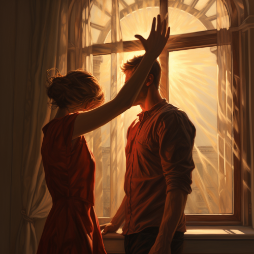 A tender and intimate scene that captures the essence of companionship and support. The setting could be a cozy, serene environment like a peaceful park bench at sunset, a quiet beach with two figures sitting close together, or a softly lit room where two people are sharing a comforting moment. The central focus is on figures side by side, engaged in a supportive or affectionate gesture, such as sitting closely, holding hands, or leaning on each other. The background features warm, soothing colors like soft blues, gentle pinks, and warm grays to enhance the feeling of closeness and comfort. Subtle details like soft light glows, gentle textures, or shared personal items add to the sense of togetherness and support. The overall mood is warm and reassuring, capturing the essence of being there for someone and sharing a close bond.