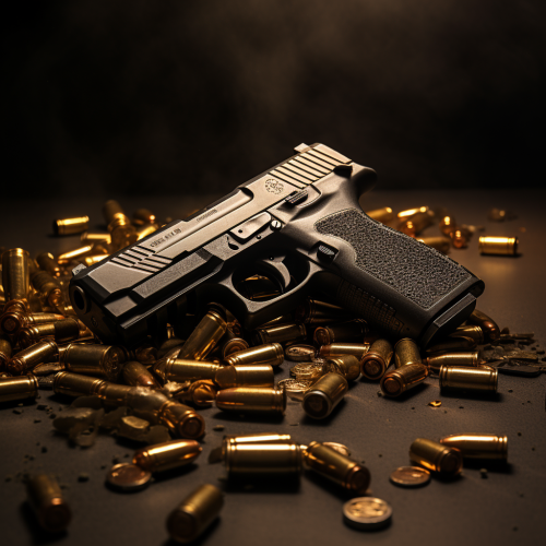 luxury wall full of AR15 rifles and Colt 1911 pistols military style gold accents