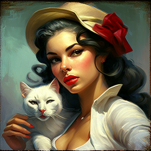 LATINA PIN UP GIRL, PIN UP GIRL STYLE, WHITE KITTEN IN ART, SMOKING --v 4 --s 750