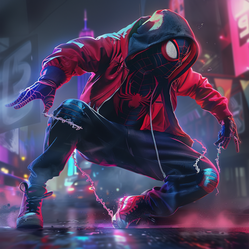 marvels spiderman miles Morales as a 1980's hip hop break dancer