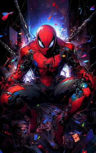 asian spider-man with an empty box in his hands, cinematic, realistic, 8k
