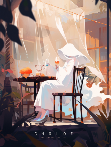 poster design with a ghost drinking a glass of wine outdoors in the daytime --niji 5 --ar 3:4